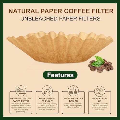 Safe material and no harsh fillersUnbleached natural paperLarge coffee filters for 12-cup coffee makersDurable and resistant to wear and tearSemi-permeable structure for optimal filteringConvenient bulk pack of 250 pieces