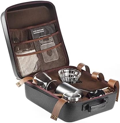 WEEILYAM Travel Coffee Gift Set with Travel Case, Manual Grinder, 250ml (8.5oz) Double Glass Wall Mug, Glass Dripper, 600ml (20oz) Server, 600ml (20oz) Coffee Kettle, Digital Scale, 100 pcs Paper Filter and Coffee Spoon. This set is everything a coffee enthusiast need while traveling, camping, vacation, or just to share some specialty coffee with friends and family. This set is perfect for any coffee enthusiast and will be a perfect gift for your coffee enthusiast friend and family.