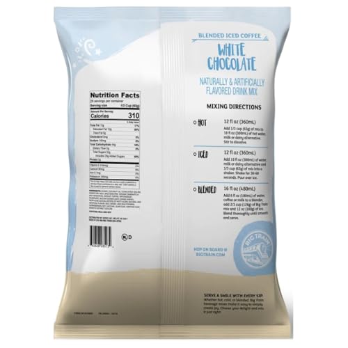 Big Train Blended Ice Coffee in White Mocha: A sweet, creamy white chocolate latte you can mix up in an instant; Just add water; Drink hot, cold or blended with ice for a frozen frappe treat that rivals expensive drinks at coffee chains