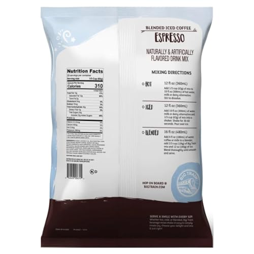 Big Train Espresso Blended Ice Coffee Mix: Supercharge your morning coffee or anytime pick-me-up with our espresso blend. Just add water! Drink hot, cold, or blended with ice for a frozen frappe treat that you can create right at home