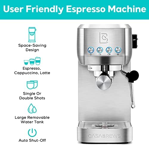 ☕【Make Your Favorite Espresso Coffee At Home】: The CASABREWS coffee machine with milk frother allows you to prepare all your favorite espresso-based coffees. You can enjoy a barista-brewed latte, cappuccino or macchiato at home. Stainless steel appearance, stylish and durable, ideal for any size kitchen. This compact espresso machine is not only perfect for home or office use, but also makes a great wedding gift, birthday gift, christmas gift, gift for mom, gift for dad and gift for wife.