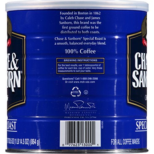 Established in 1862, Chase & Sanborn was the first company to pack and ship roasted coffee in sealed tins. Today, Chase & Sanborn continues its tradition of quality and value with a robust blend of coffee at an affordable price. The Special Roast Coffee is a medium-roasted, robust blend. The perfect pick-me-up for your morning or afternoon routine. The 30.5 ounce steel can is 100% recyclable