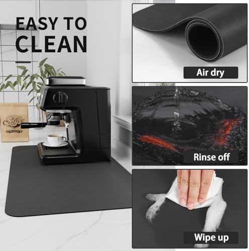☕【Hiding stains & easy to clean】Unlike traditional cloth or other coffee machine mats, the surface of special PU materials can effectively hide stains such as water, coffee, and milk, saying goodbye to messy and stained countertops. You only need to wipe or rinse to keep it clean.