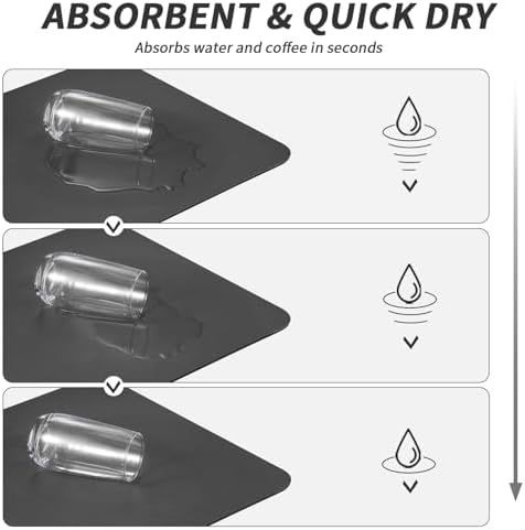 ☕【Wide range of uses】 It is not just a coffee bar mat, but also a high water absorption and quick dry pad that can be widely used as a drying mat for kitchen countertop, cups, water dispensers, mixers, ice cream machines, dish washing racks, dinner plates, tableware, etc., or as a food pad for pets.