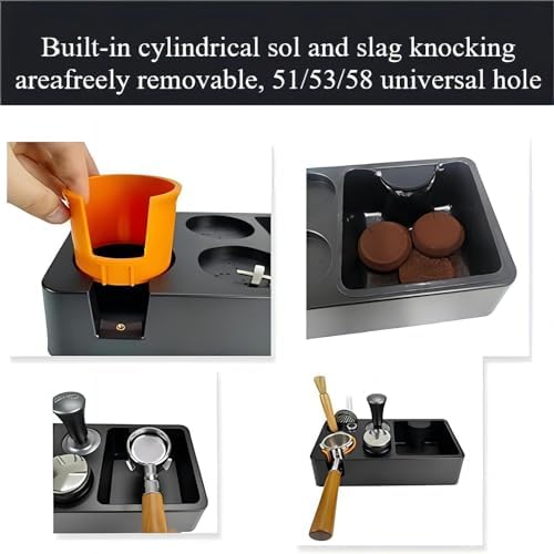 ☕【Multiuse Coffee Knock Box】Our multifunctional expresso knock box, with its space-saving design, contains compartments for expresso accessories storage like a 51/54/58mm tamper, portafilter, basket and distributor. It streamlines your preparation area and organizes your coffee accessories neatly to a large extent, providing you with a tidy coffee workspace.