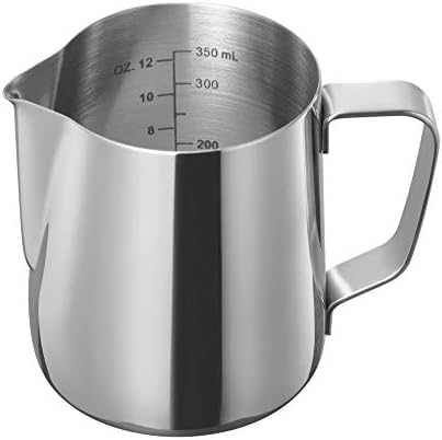 This set comes with a 12oz milk frothing pitcher, a silicone coffee tamper mat, a microfibre cleaning cloth and a set of 6 coffee art decorating stencils.