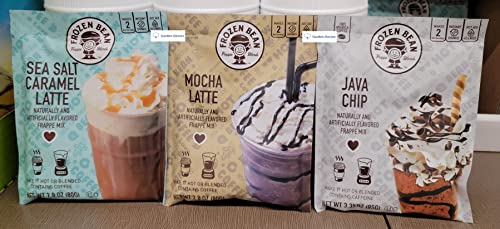Frozen Bean Frappe Blends 3 Flavors: Sea Salt Caramel Latte, Mocha Latte, Java Chip 2.8oz 80g (Three Bags)