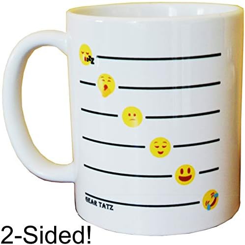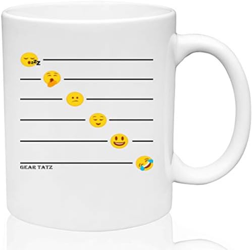 Get this brand new, 11oz., white, ceramic, 2-Sided, , dishwasher safe, funny novelty coffee mug and show off your sense of humor at the office or around the house. Features an an emoji graph showing the drinker’s mood based on amount of coffee consumed. Funny! Made with the highest quality print that won’t wash off. A perfect gag or prank gift for office parties or gift exchanges. Also a perfect gift for Mothers Day, Fathers Day, employees, the boss, co-workers, men, women, friends, wives, husbands…etc.