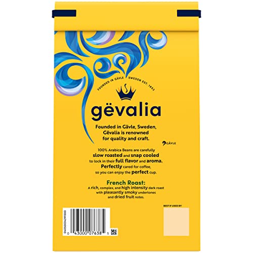 Gevalia French Roast Ground Coffee fills your mug with rich and never-bitter dark roast coffee. Gevalia beans are slow roasted, snap cooled to lock in flavor and aroma. We provide the perfect care for the perfect cup. Founded in Gavle, Sweden in 1853, Gevalia French Roast Ground Coffees are made from 100% Arabica beans sourced from around the world. Our full-flavored ground beans can be used in all coffee makers. Each 20-ounce bag of dark roast ground coffee is great for those keeping Kosher. Gevalia Ground Coffee’s fresh lock tin tie keeps in exquisite coffee taste until you’re ready to awaken your senses. Try Gevalia Ground Coffee and experience 150 years of Swedish tradition