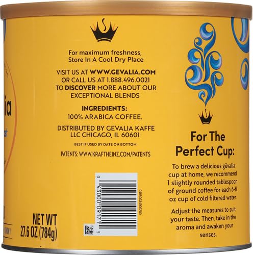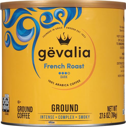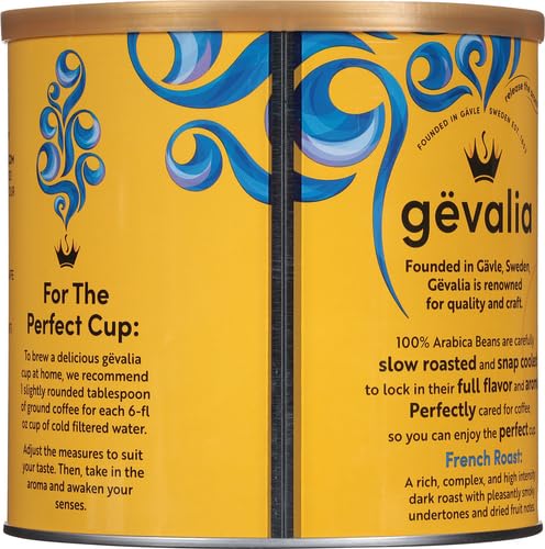 Experience always rich, never bitter coffee with Gevalia French Roast Dark Roast Ground Coffee Canisters. At Gevalia, we slow roast and snap cool our beans to achieve their maximum flavor potential. French roast coffee is made with only 100% Arabica beans to decrease bitterness and have a better taste. Start your day with an intensely rich and complex dark roast coffee with a mouthwatering smoky flavor. For the perfect cup, use 1 slightly rounded tbsp of French roast coffee for each 6 fl oz cup of cold water. Drink a cup of coffee first thing in the morning with your favorite pastry. Our rich coffee is also ideal for sipping alongside a sweet dessert. Each 27.6 oz canister contains about 110 cups of coffee and comes in a resealable canister so you can keep our coffee grounds fresh. Enjoy a perfectly cared for coffee with Gevalia.