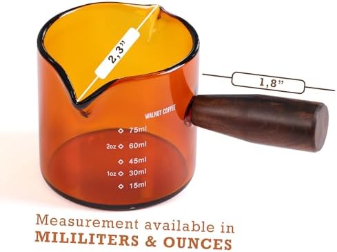 DETAILED DESIGN: Our espresso shot glass measuring cup is designed with 2 spouts for easy pouring without turning. Graduated marks read in ounces and milliliters for all your measuring needs. The mouth of the pitcher is V-shape, wide enough to fit most kinds of portafilters