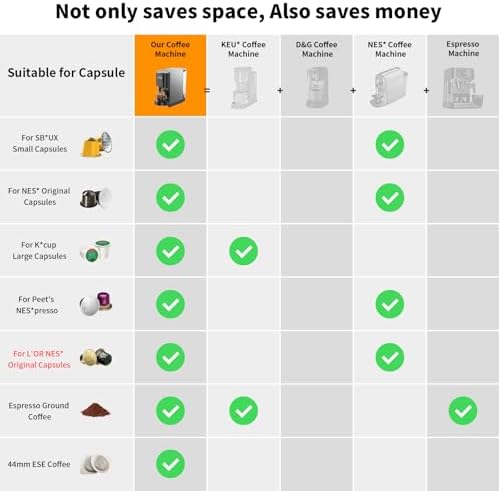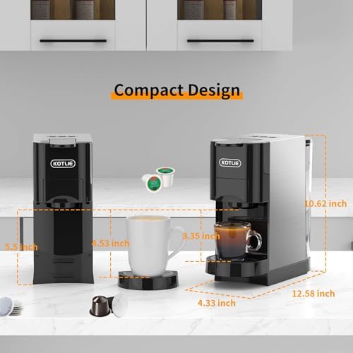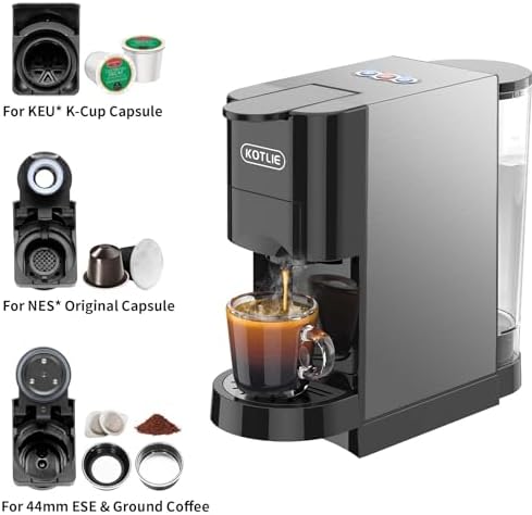 [4-in-1 Espresso Machine] The KOTLIE Espresso Machine for K-Cup/Nespresso Original Capsules/Ground Coffee and ESE(44mm) Coffee. It is also for Dolce Gusto/Lavazza Blue/Mio/Caffitaly/K-fee Capsules(need to buy pods in KOTLIE stores)