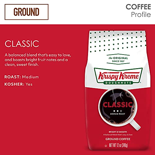 We’ve been making our famous doughnuts since 1937, and we know nothing goes better with a delicious sweet treat than a fresh, hot cup of coffee. That’s why we’ve been brewing our own since we first opened our doors. You might not be able to visit a Krispy Kreme Doughnuts shop every morning, but you can enjoy the goodness of our coffee at home. Krispy Kreme Doughtnuts coffee comes in a variety of rich signature blends like Krispy Kreme Classic. Krispy Kreme Classic Medium Roast coffee is a balanced, easy-to-love blend that boasts bright fruit notes and a clean, sweet finish. Things are better enjoyed together, especially the sweet fluffy clouds of deliciousness we call doughnuts and Krispy Kreme coffee.