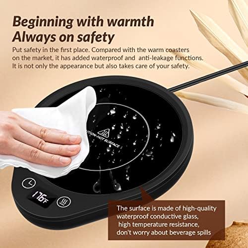 ☕【Safe & Durable】The beverage warmer with high-tech materials make the coffee warmer heat-resistant and fire-resistant. The spill-proof design avoids damage and makes cleaning a breeze.Please keep it out of the reach of children to prevent burns.
