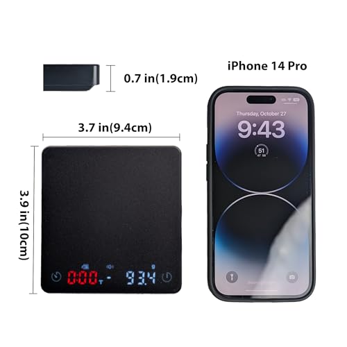 【Tiny Coffee Scale Fit Most Espresso Machines】MiiCoffee Nano Coffee Scale fits in your palm. Size is 3.9 x 3.7 x 0.7 inches.