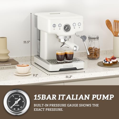 Coffee Maker for Home/ Office: Brew barista make quality espresso, cappuccino, and lattes effortlessly with our espresso machine. It boasts a powerful 15-bar professional pressure system for high-quality coffee extraction, allowing us to create favorite coffee drinks. The built-in pressure gauge on this coffee makers shows the exact pressure helping you make adjustments according to your personal taste preferences. Perfect for home, office, or as a thoughtful gift for various occasions.
