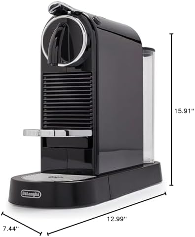 Indulge in a rich cup of coffeehouse-style Lungo or espresso with this Nespresso Citi espresso maker from DeLong with its new design that features iconic lines and a premium finish, This single-serve espresso system will make each morning a bit easier. Simply pop in a capsule, select one of the programmable buttons for Espresso or Lungo preparation, and brew. The fast, 25 second preheating time, combined with the high pressure pump, means you’ll be sipping a delicious cup of Coffee in no time. Equipped with a wide range of intuitive and user-friendly features, The Citi perfectly suits all Coffee drinking preferences. With a used capsule container that holds up to 10 spent capsules and automatic power off feature that shuts down the machine After it’s been sitting idle for Nine minutes, there’s less for you to worry about after brewing. The folding cup shelf ensures you can use your favorite mug, glass, or travel tumbler, whether tall or short, and the automatic volume control feature ensures you’ll always brew just the right amount. Backed by a manufacturer’s one year , the Citi includes a 16 Capsule tasting pack to get you started. 14-3/5″ L x 5-1/10″ W x 10-9/10″ H.
