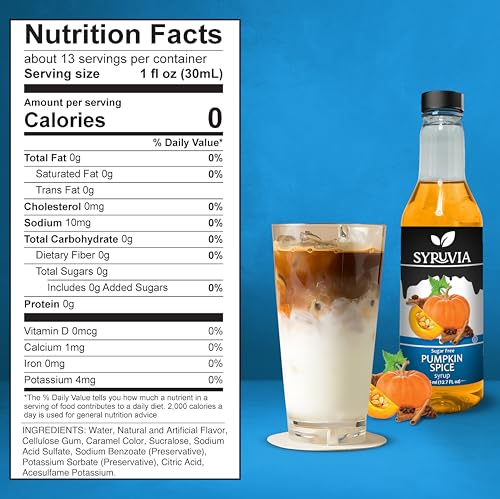 Indulge with Zero Guilt: Enjoy the rich, festive flavors of the holiday season without the added sugar. Syruvia sugar-free Pumpkin Spice syrup lets you indulge in your favorite holiday drinks and treats guilt-free, making every sip a celebration.