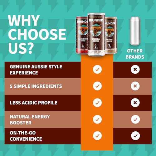 Premium Indulgence – Experience a symphony of rich flavors and velvety textures with Thunder Coffeemilk. Our 12-pack of 11 oz Aussie-style cold-brewed coffee drinks in cans is crafted with real milk, real coffee, from real farmers. Each sip promises a luxurious and energetic start to your day.