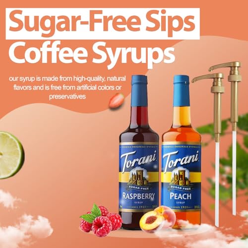 FLAVOR YOUR DRINKS: This variety pack includes 2 syrup flavors – Sugar Free Raspberry & Peach – to customize your coffee, sodas and more.