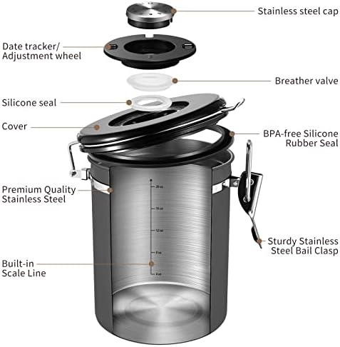 Freshness is Everything – Our coffee canisters help maintain the freshness of your coffee beans by keeping air out and free of harmful oxidation with a one-way CO2 valve and 100% BPA-free silicone rubber seal.
