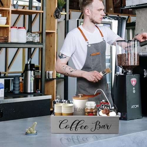 【PREMIUM QUALITY COFFEE STATION ORGANIZER】: The coffee bar organizer is made of high quality solid pine wood, light and strong. Featuring a hand painted “Coffee Bar” lettering, makes a great addition to your coffee station decor. MINCORD coffee bar station are very easy to take care of. When they are accidentally soiled, wipe them with a soft, clean, damp cloth to clean up the residue or liquid on the wooden coffee bar storage basket.