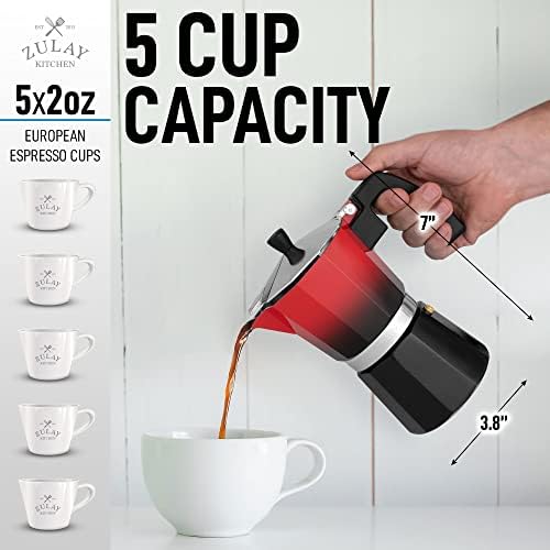 MAKE GREAT TASTING COFFEE: Brew rich espresso the traditional way with this moka pot. Fill up the filter with your favorite coffee grounds, place the Italian coffee pot on a stovetop, and watch the best-tasting brew get ready to make rich and aromatic lattes, cappuccinos, or espresso. Brew capacity is 2, 5 oz Americano style cups or 6, 2 oz European espresso cups.